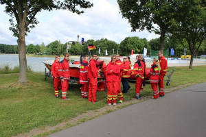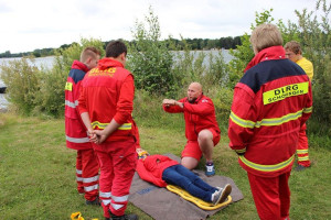 Wer nicht zum regulären Wachdienst eingeteilt war, durchlief eine Ausbildung mit mehreren Stationen: Funk- und Bootseinweisung, Umgang mit Rettungsgeräten wie dem Spineboard, Erste Hilfe mit Schwerpunkt auf Herz-Lungen-Wiederbelebung sowie Schnorcheltauchkette zur Vermisstensuche im Wasser. „Die Ausbildung haben wir mit einer Einsatzübung abgeschlossen“, sagte Giesemann.