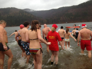 Am 1. Januar 2013 wollten sie allerdings einen Rekord knacken: Mindestens 100 Leichtbekleidete sollten sich in die Innerstetalsperre stürzen – zu Ehren der Deutschen Lebens-Rettungs-Gesellschaft, die in diesem Jahr hundert Jahre alt wird.