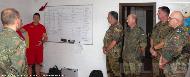 Marc Giesemann, Technischer Leiter Einsatz im Bezirk Braunschweig und Hauptmann der Reserve stellte den Besuchern den Aufbau der DLRG, die Station am Tankumsee und die dortigen Abläufe im Wasserrettungsdienst vor.