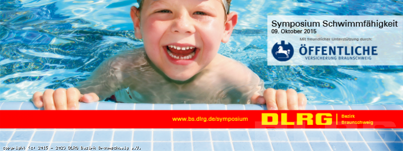 In den letzten Jahren wurden von unterschiedlichen Universitäten, Sportbünden und der DLRG mehrere Befragungen und Analysen zur Schwimmfähigkeit in Deutschland durchgeführt. Hierbei zeigt sich ein besorgniserregender Trend. Immer weniger Kinder können am Ende der Grundschulzeit nicht richtig schwimmen. Vor diesen Hintergrund richtet der DLRG Bezirk Braunschweig e. V. am Freitag, den 9.10.2015 ein Symposium Schwimmfähigkeit in den Räumen der Öffentlichen Versicherung Braunschweig, Theodor-Heuss-Straße 10, 38122 Braunschweig.